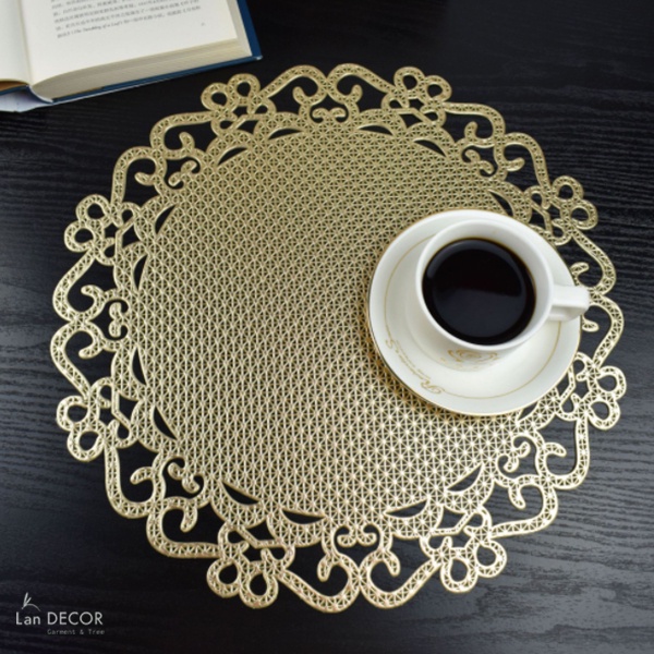 Nhà cửa & Đời sống > Bộ đồ bàn ăn > Khay, tấm lót bàn ăn || Tấm lót bàn ăn PVC tròn viền hoa văn - TL143Còn hàng