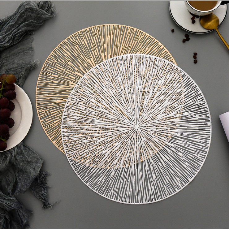 Giới thiệu Tấm Lót Bàn Ăn Tròn Cách Nhiệt Nhựa dẻo PVC Silicon Vàng và Bạc Hoa Văn Tia Sáng | Lót Bình Hoa