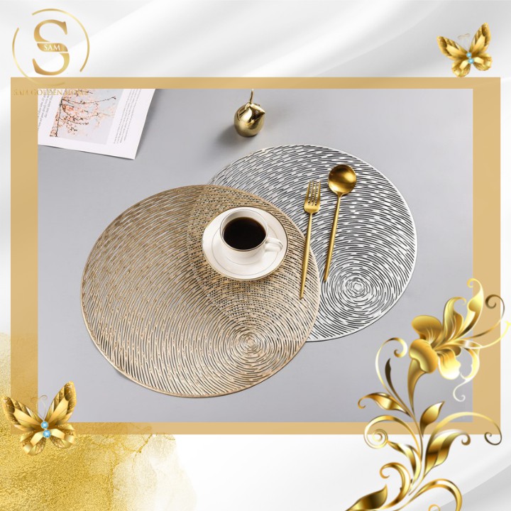 Tấm Lót Bàn Ăn Tròn Cách Nhiệt Sang Trọng Set Lót Bàn Ăn Vàng Gold Bắc Âu Placemat