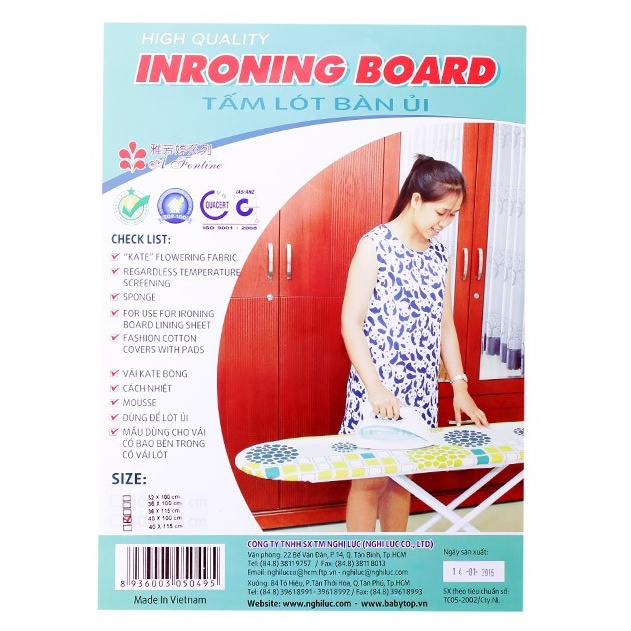 Giới thiệu Tấm lót bàn ủi cách nhiệt (áo bọc) 115x40 Nghị Lực- thay các kệ bàn ủi