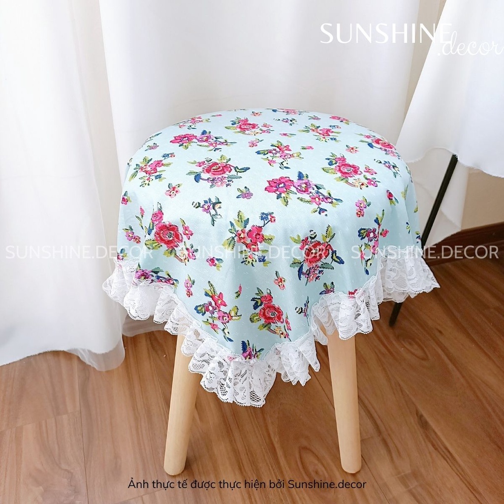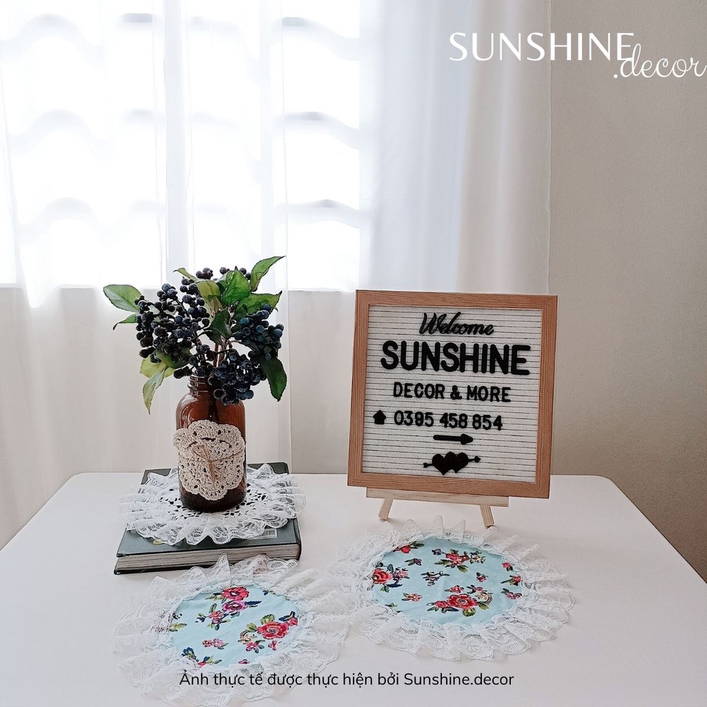 Tấm lót bình hoa, miếng lót lọ hoa trang trí họa tiết hoa hồng phối ren phong cách Vintage cổ điển