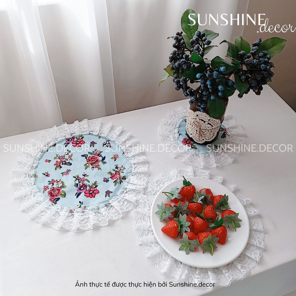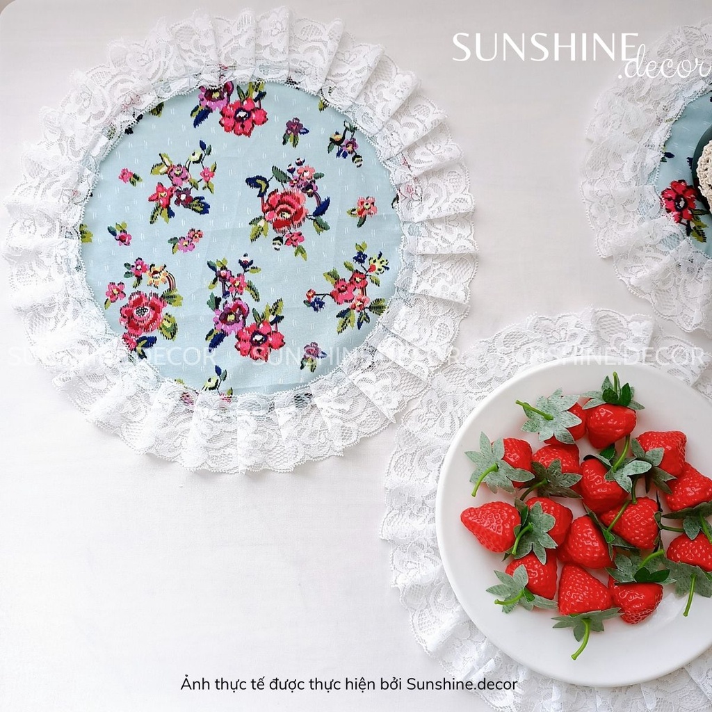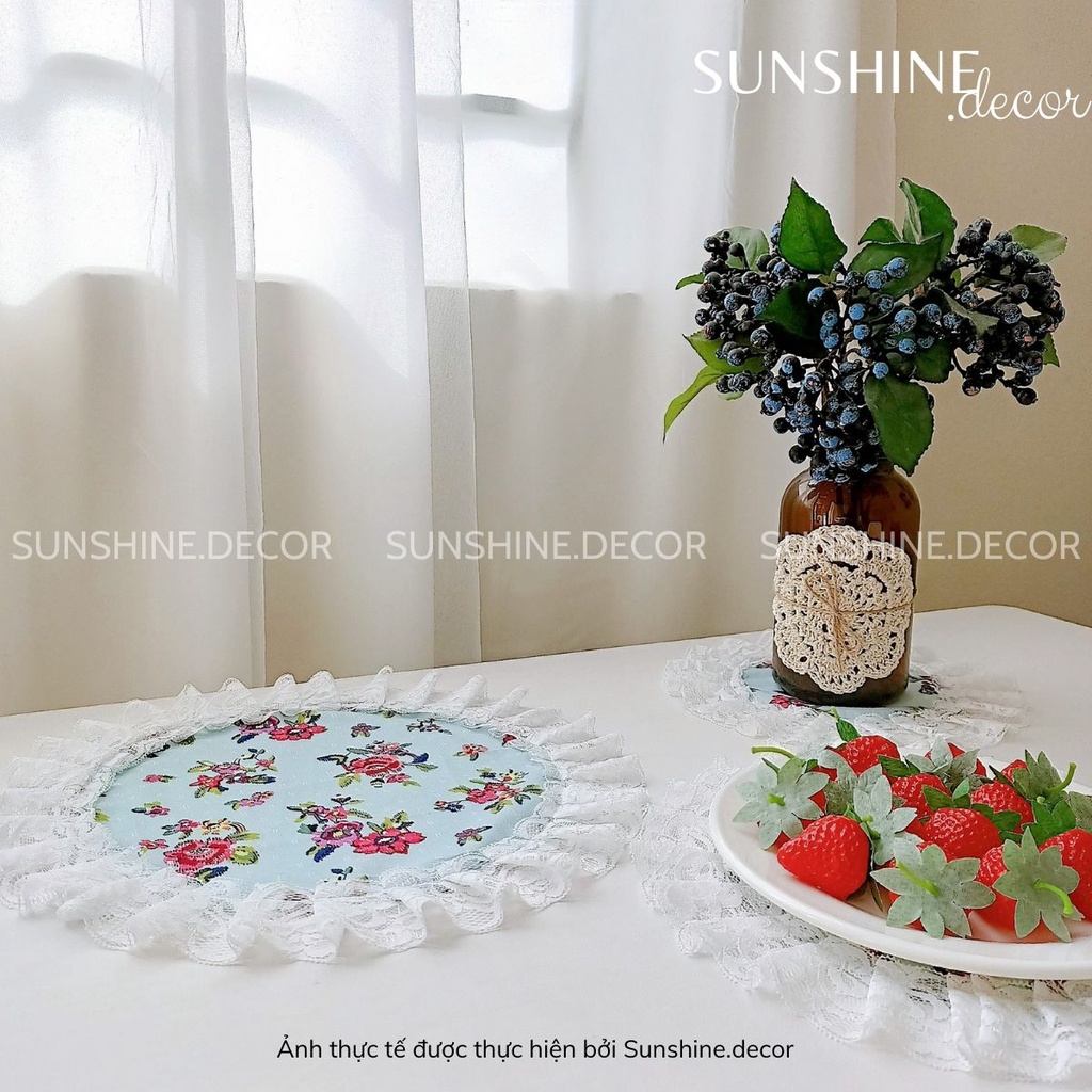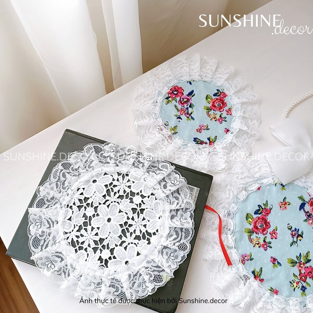 Nhà cửa & Đời sống > Bộ đồ bàn ăn > Khay, tấm lót bàn ăn || Tấm lót bình hoa, miếng lót lọ hoa trang trí họa tiết hoa hồng phối ren phong cách Vintage cổ điểnCòn hàng