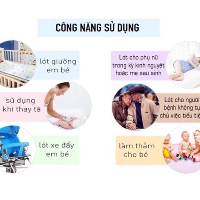 - Lót chống thấm giúp mẹ vệ sinh cho bé tại chỗ tiện lợi hơn .. ( thay bỉm, lau khô người khi bé tắm .. )