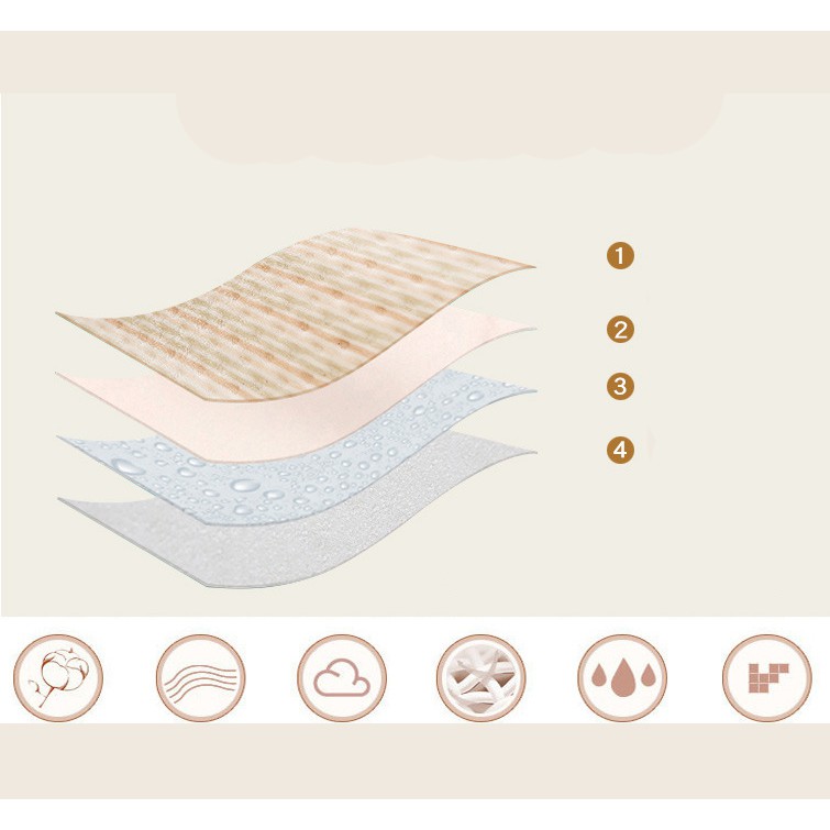 ➖ Mẹ có thể dùng lót chống thấm khi thay tã bỉm cho bé hoặc lót dưới giường, nệm, cũi, xe đẩy để phòng khi bé tè dầm nước tiểu sẽ không thấm vào nệm hoặc gây ướt người bé, giảm các bệnh viêm phổi và viêm phế quản ở bé.