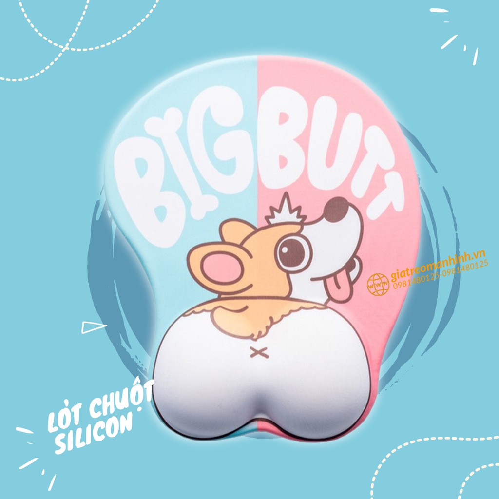 Lót Chuột 3D - Đệm Silicon Êm Ái - Size 26x21cm Hình Cute Mông Corgi, Poodle, Bulldog, Husky