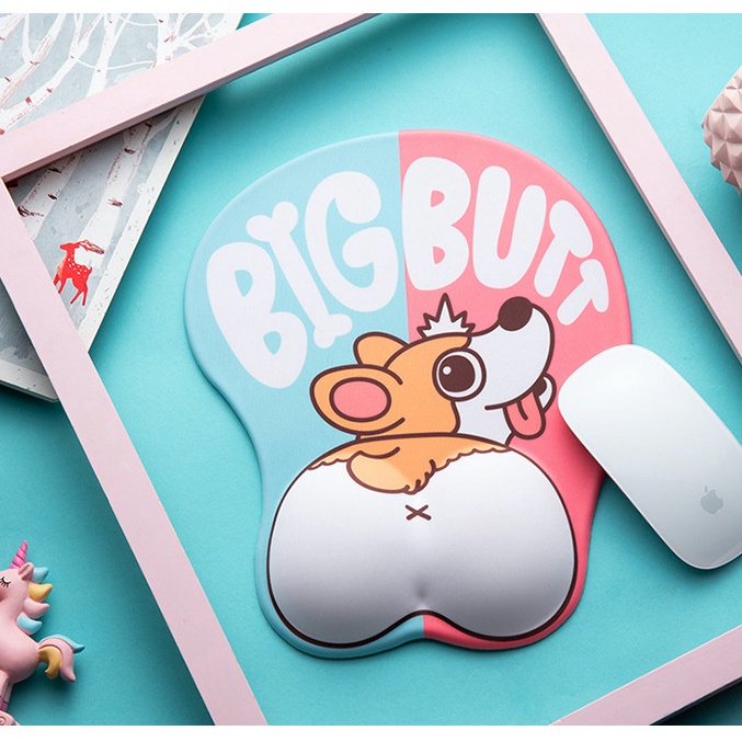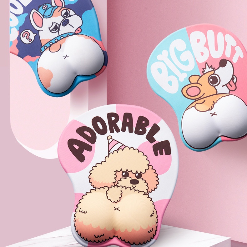 Lót Chuột 3D Hình Mông Corgi, Poodle, Bulldog, Husky và Chân mèo, Trái Tim Dễ Thương Êm Tay Chống Mỏi Cổ Tay