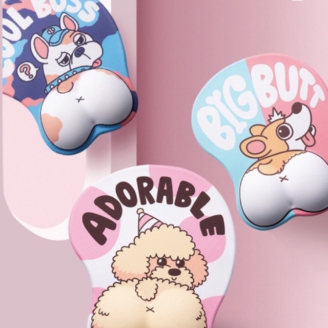 Lót chuột 3D kê tay hình dễ thuơng mông Corgi, Poodle, Bulldog, Husky