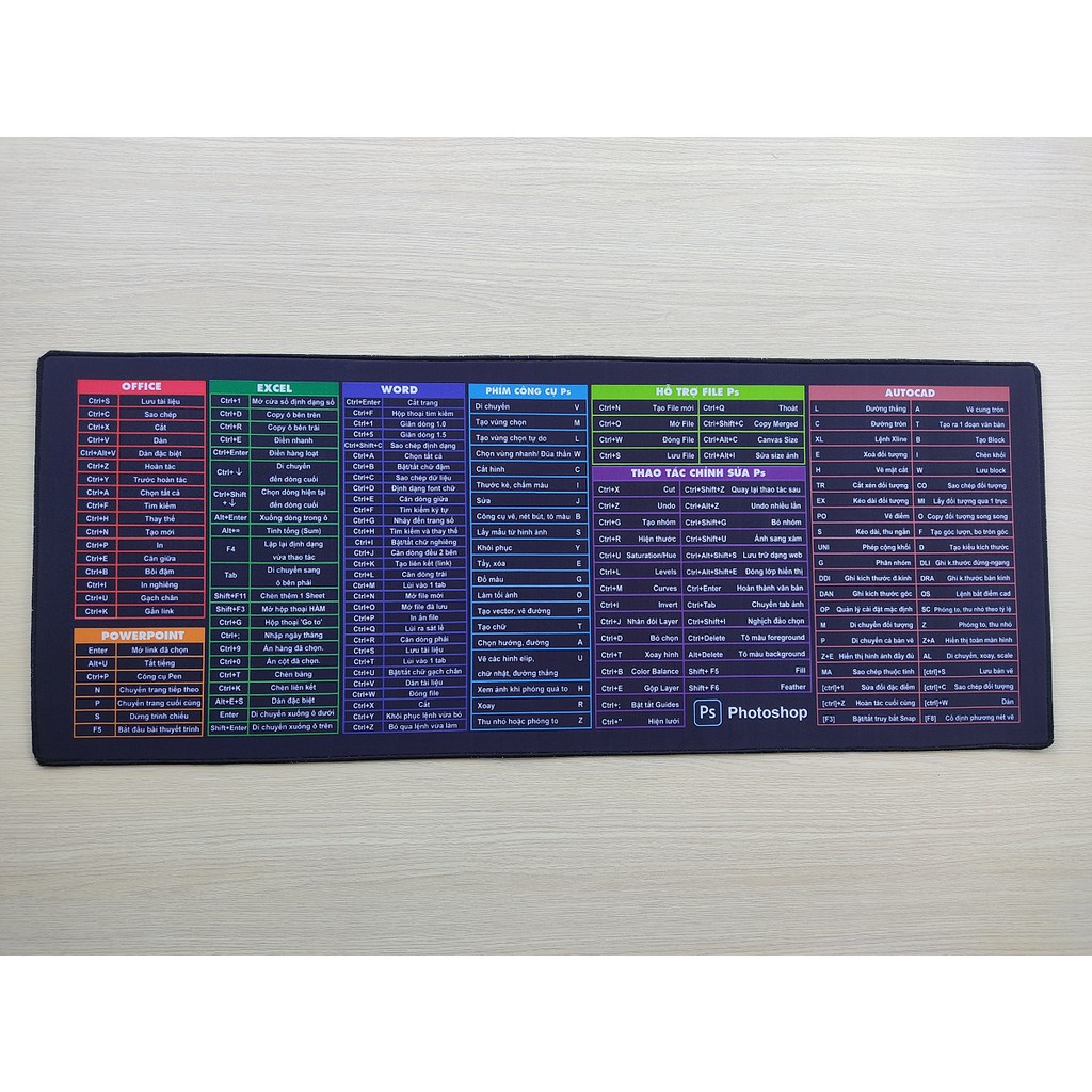 Tấm Lót Chuột, bàn di chuột (30x80cm; dày 3,5mm)✅FREESHIP✅ Phím Tắt Văn Phòng Thông Dụng, Thiết Kế chuyên nghiệp