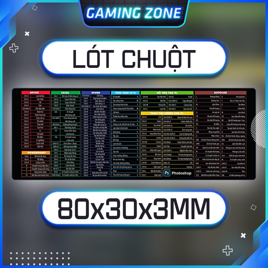 🔴 THÔNG SỐ SẢN PHẨM- Tên sản phẩm: Lót chuột, bàn di chuột chơi game Phím Tắt Văn Phòng chống trượt siêu bền siêu đẹp