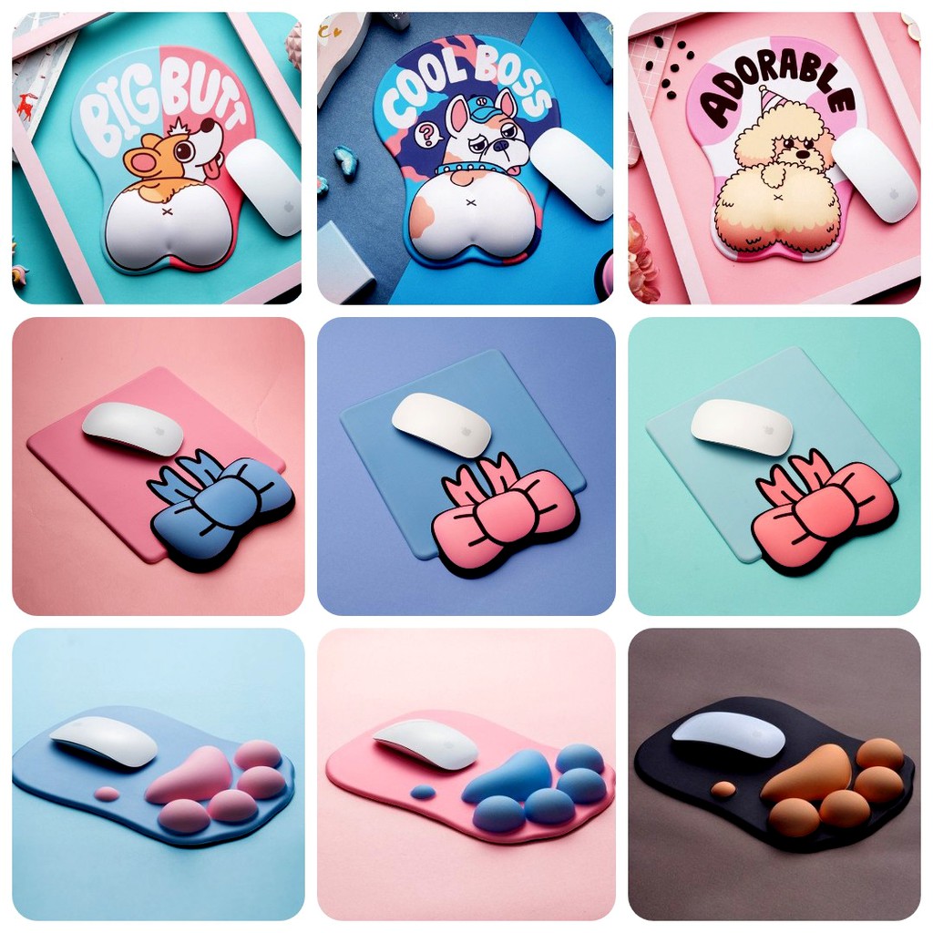 Máy tính & Laptop > Phụ Kiện Máy Tính > Bàn Di Chuột || Lót chuột có đệm tay Silicon hình mông cún Corgi, Husky, Bulldog, miếng lót chuột 3D cuteCòn hàng