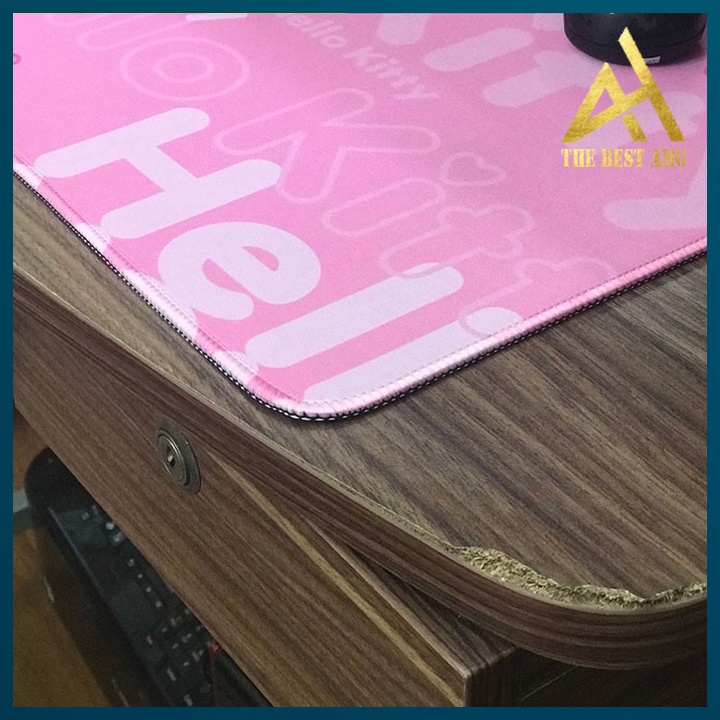 Lót Chuột Hello Kitty Đế Cao Su Chống Trơn, Pad Chuột Hồng Khâu Viền Chắc Chắn Kích Thước 80x40cm
