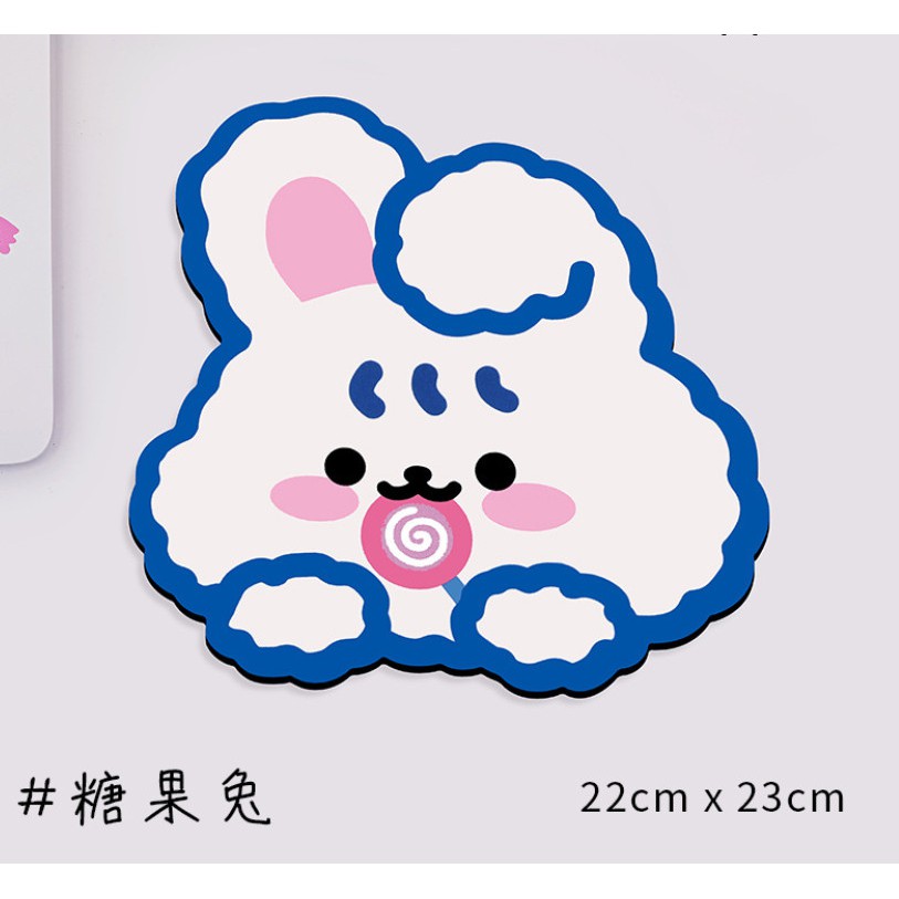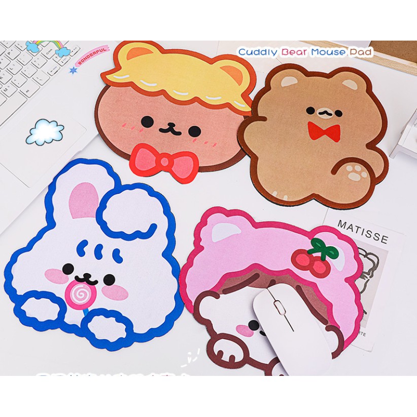 Đế lót chuột Xì tai Hàn Quốc siêu dễ thương- Mặt của miếng lót bằng vải, màu sắc và hình thù được in chuyển nhiệt
