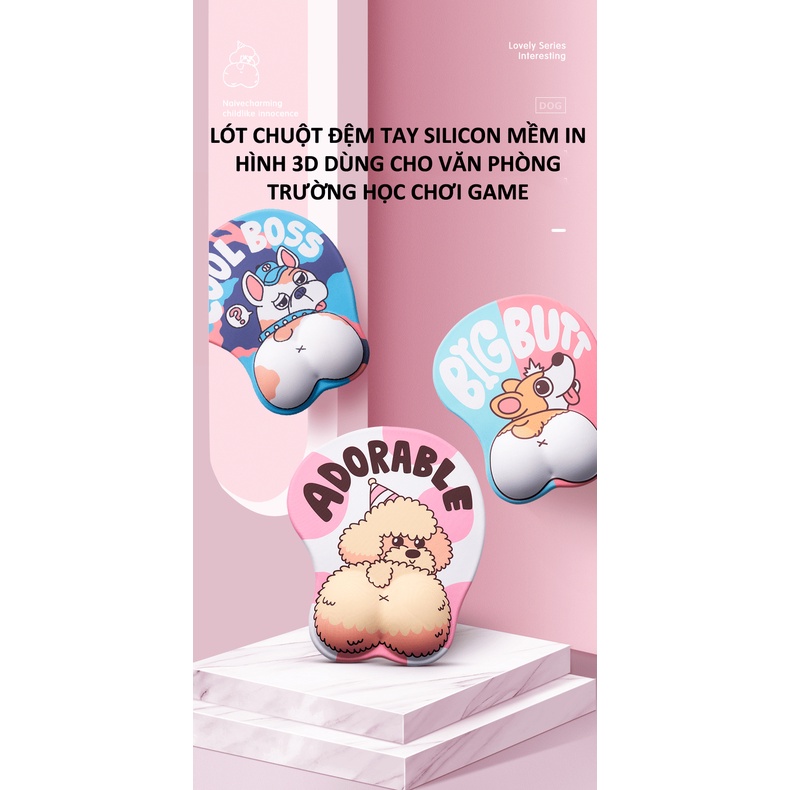 Lót chuột đệm tay silicon mềm in hình 3D dùng cho văn phòng, trường học, chơi game