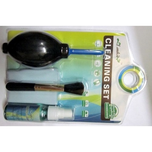 Bộ dụng cụ gồm 6 món: dụng cụ thổi bụi, chổi quét, nước lau màn hình, khăn lau, giấy thấm màn hình, tâm bông sẽ giúp chiếc laptop luôn sạch sẽ như mới.