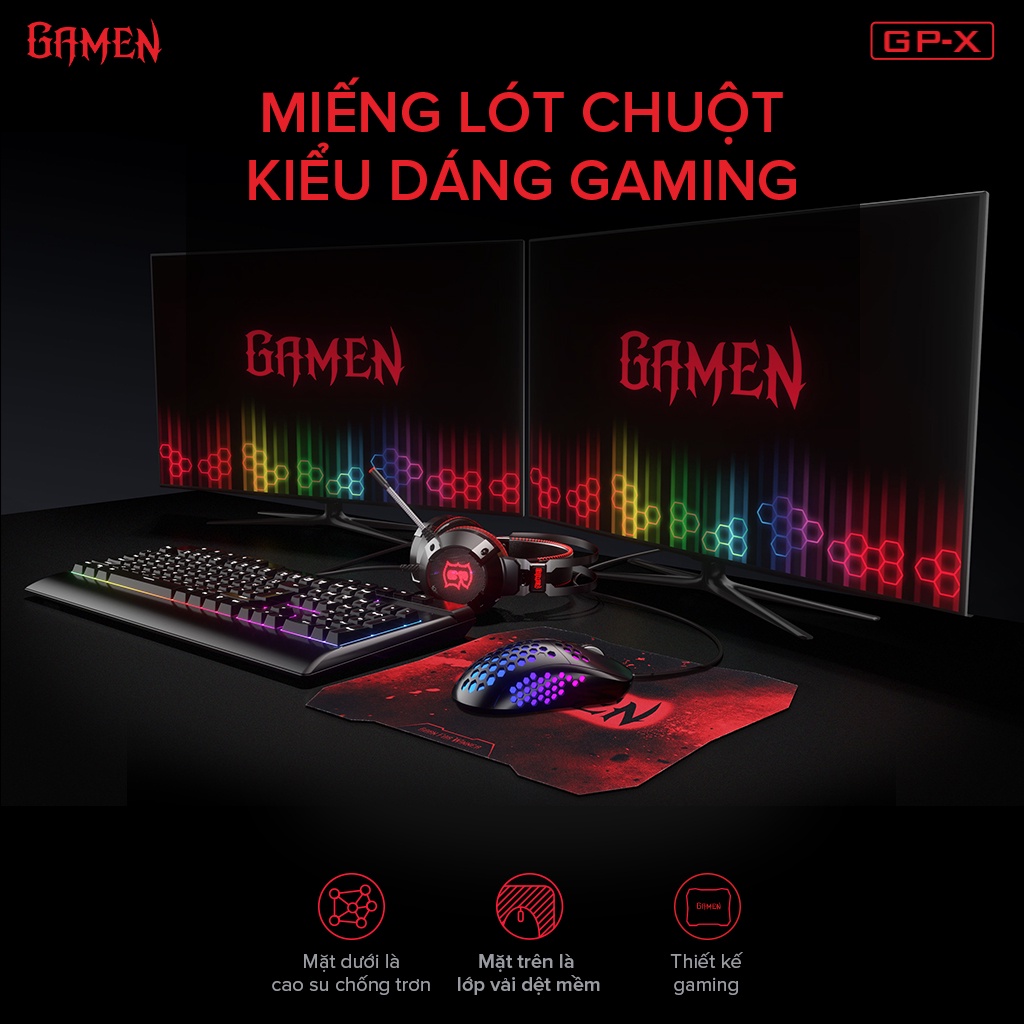 Máy tính & Laptop > Phụ Kiện Máy Tính > Bàn Di Chuột || Tấm lót chuột Gamen GP-X bàn di chuột kiểu dáng gaming kích thước 29 x 25 cmCòn hàng