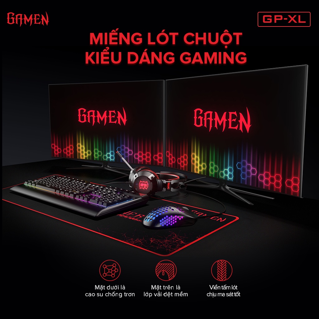 Tấm lót chuột Gamen GP-XL bàn di chuột kiểu dáng gaming kích thước lớn 70 x 30 cm