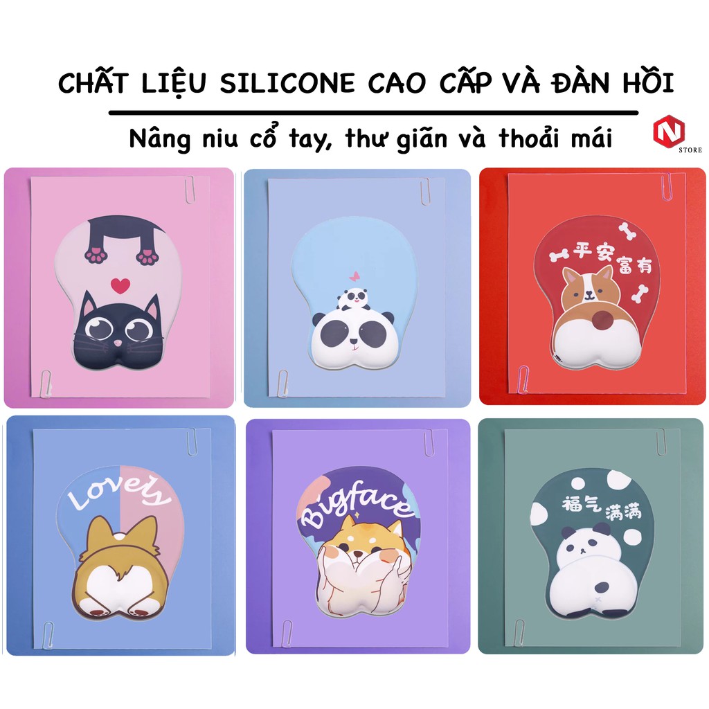 Tấm Lót Chuột In 4D Có Đệm Chống Mỏi Cổ Tay Silicone Cao Cấp Hình Đáng Yêu