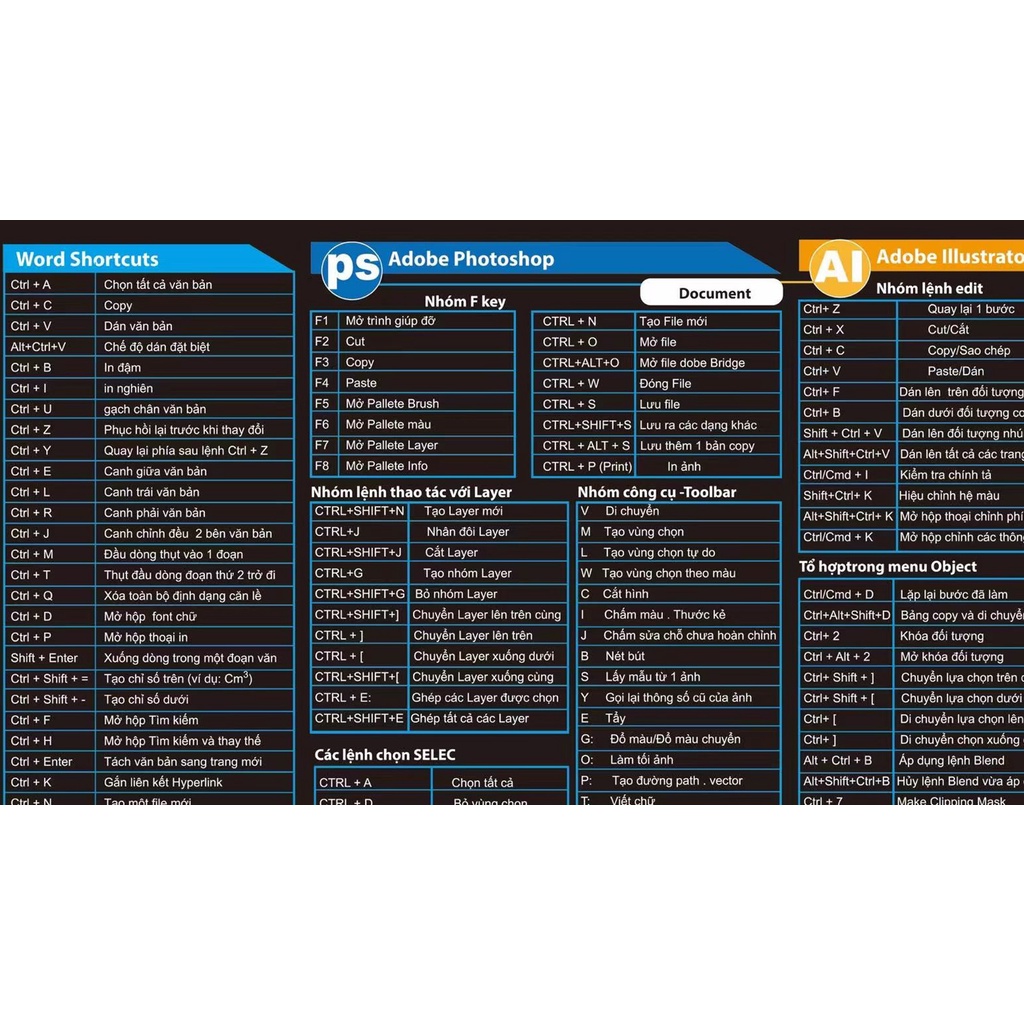 Máy tính & Laptop > Phụ Kiện Máy Tính > Bàn Di Chuột || Lót chuột khủng kích thước 300x700x3mm chi tiết các phím tắt thông dụng chống trượt chơi game và văn phòngCòn hàng