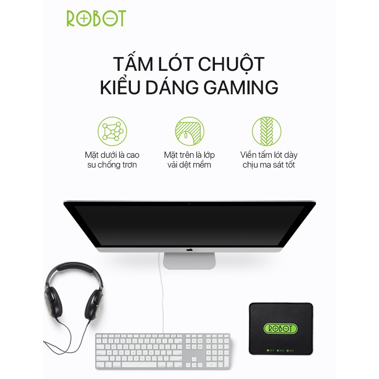 Tấm Lót Chuột/Bàn Di Chuột Kiểu Dáng Gaming ROBOT RP01 Black - 22*18*0.2(cm)Mặt dưới là cao su chống trơn tuột, chịu ma sát