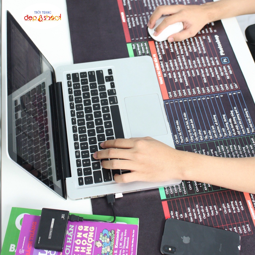Giới thiệu Lót Chuột lớn in Phím Tắt Văn Phòng Office, Powerpoint, Excel, Word, PS, Autocad Da PU 40x90 Chống nước