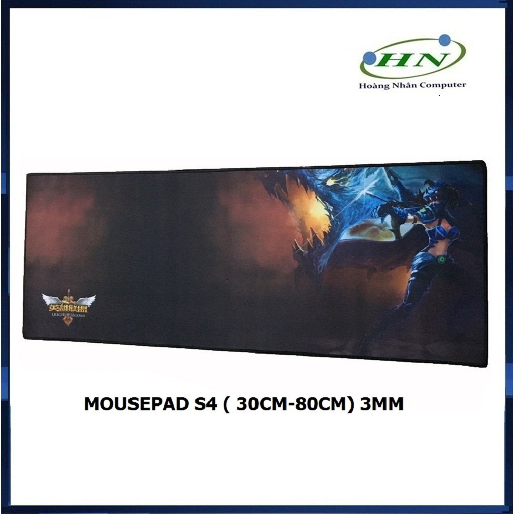 Mousepad dài chữ nhật S4 kích thước 30 x 80 dày 3mm, viền được may đẹp chắc chắn, không bị bung. Có thể lót vừa bàn phím và chuột.