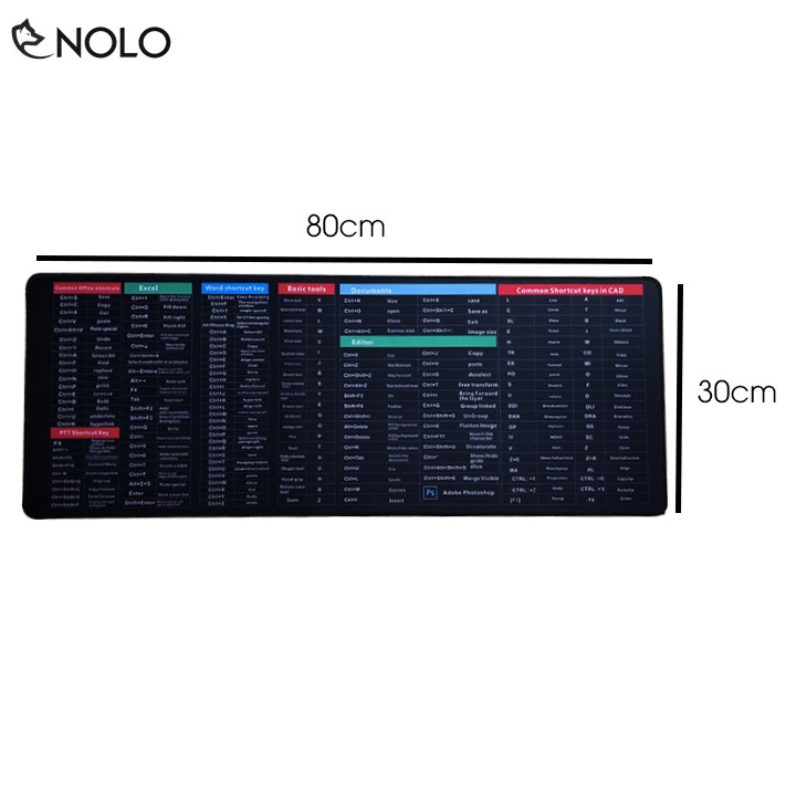 Máy tính & Laptop > Phụ Kiện Máy Tính > Bàn Di Chuột || Lót Chuột Padmouse Lớn Kích Thước 30x80cm Dày 3 Ly Bề Mặt In 3D Không Phai 175 Phím Tắt Của Office, Word, PhotoshopCòn hàng