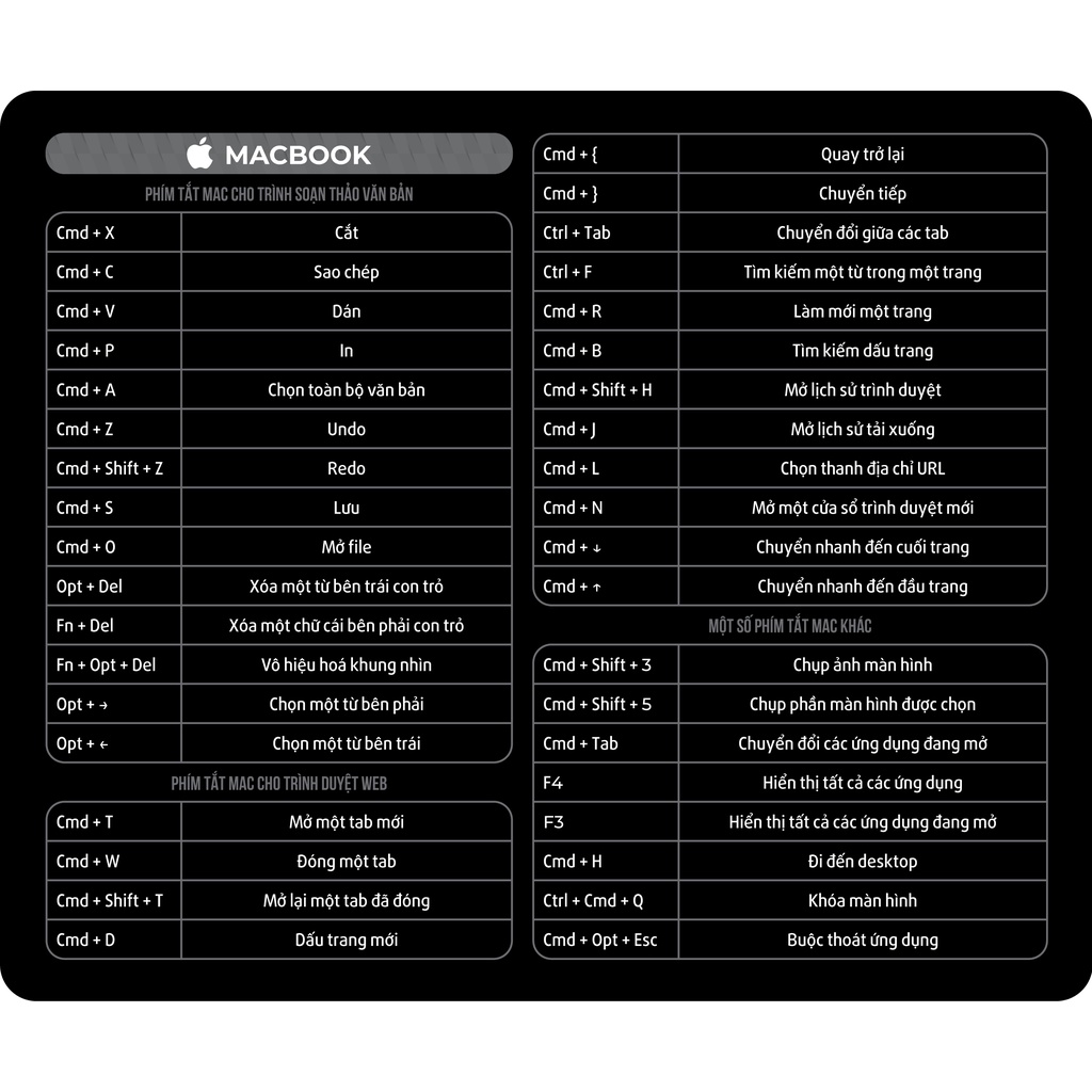 Lót chuột phím tắt dân văn phòng và Macbook các phần mềm: WORD,EXCEL,...Hiện nay trên thị trường có bán những sản phẩm lót chuột GIÁ RẤT RẺ gây ảnh hưởng đến uy tín của sản phẩm chất lượng tốt. Nên Quý Khách Hàng hãy lưu ý khi chọn mua sản phẩm.