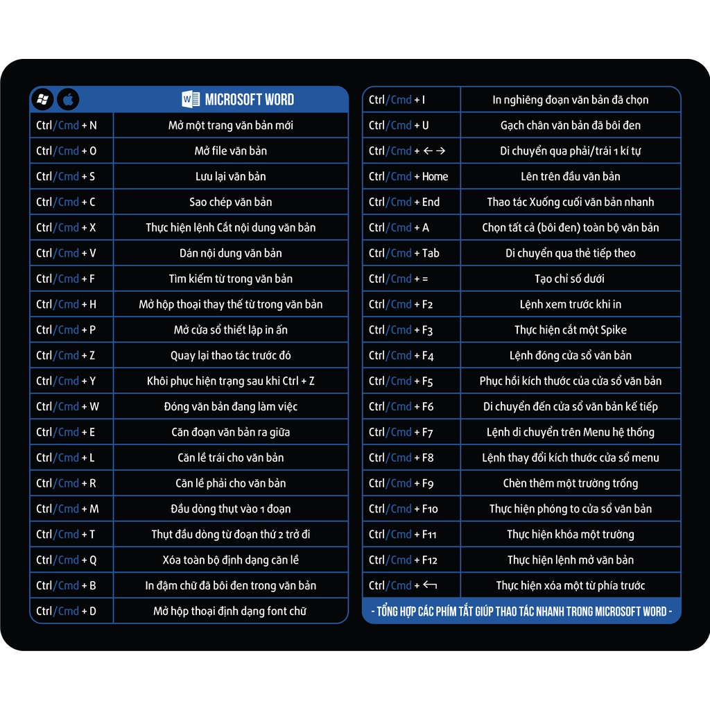 Lót Chuột Phím Tắt Công Thức Dân Văn Phòng Chất Liệu Cao Su Tự Nhiên [DÙNG CHO 2 HỆ ĐIỀU HÀNH WINDOWS VÀ MACOS]