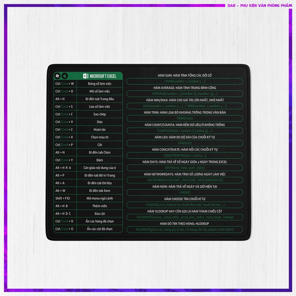 Máy tính & Laptop > Phụ Kiện Máy Tính > Bàn Di Chuột || Lót Chuột Phím Tắt Công Thức Dân Văn Phòng Chất Liệu Cao Su Tự Nhiên [DÙNG CHO 2 HỆ ĐIỀU HÀNH WINDOWS VÀ MACOS]Còn hàng