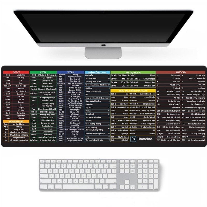 Tấm Lót Chuột Phím Tắt Văn Phòng Cao Cấp Tiếng Việt Kết Hợp Bàn Di Chuột.Ghi danh sách các phím tắt, phím nhớ nhanh cho dân Văn Phòng.