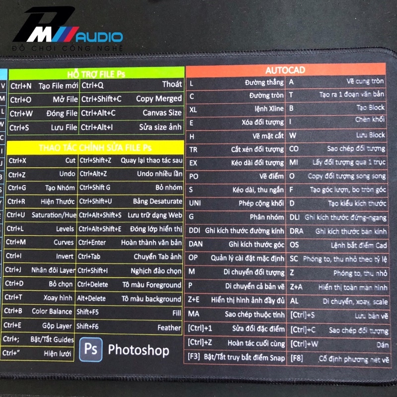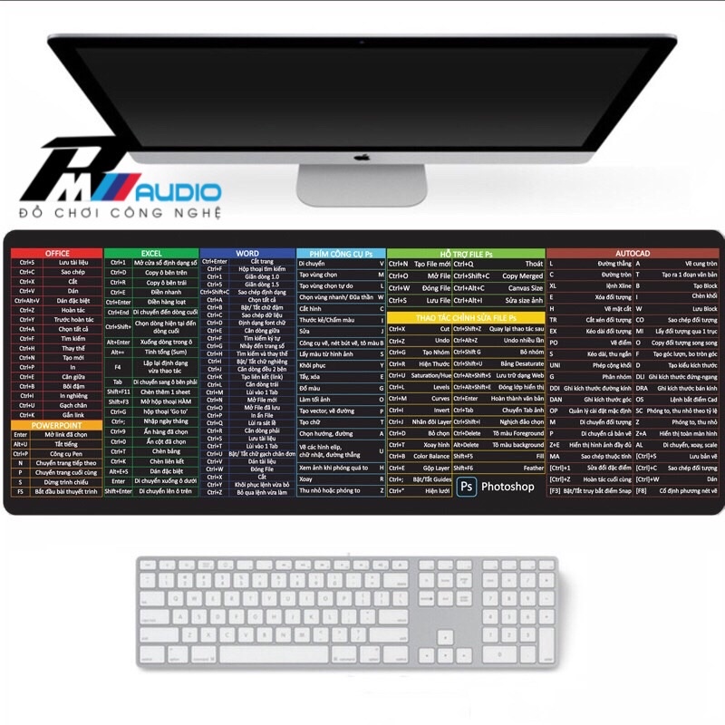 Giới thiệu Lót Chuột Phím Tắt Văn Phòng Cao Cấp kích thước 80x30x0,2cm.25x30x0,2cm.Tiếng Việt Kết Hợp Bàn Di Chuột-BMVAUDIO