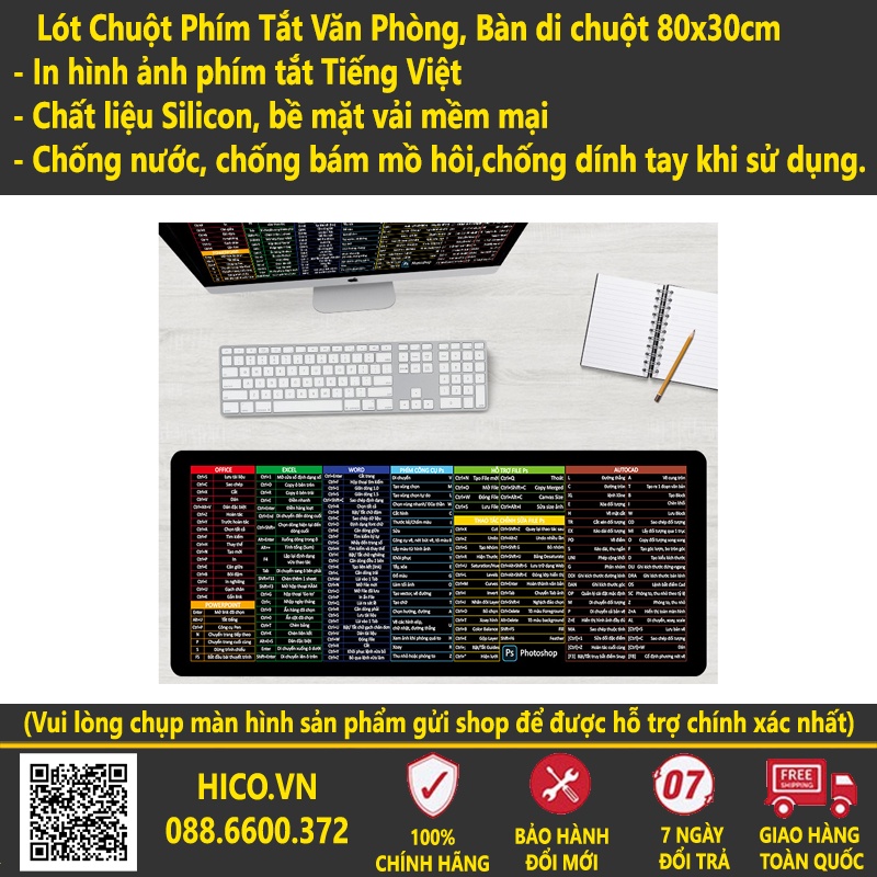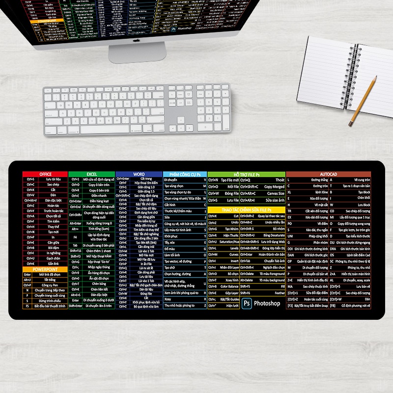 Máy tính & Laptop > Phụ Kiện Máy Tính > Bàn Di Chuột || Lót Chuột Phím Tắt Văn Phòng Office Thiết Kế Bảng Tiếng Việt Cỡ Lớn Siêu Bền Đẹp Size 30x80cmCòn hàng