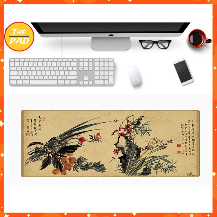Lót Chuột Phong Cách Thủy Mặc Cổ Phong, 30x80 cm, In Đẹp, Chất Liệu Cao Su Tự Nhiên