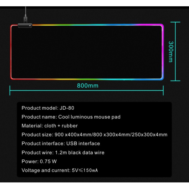 Lót Chuột RGB - Mouse pad RGB - 80x30x0.4cm - 30 NGÀY ĐỔI TRẢ MIỄN PHÍ