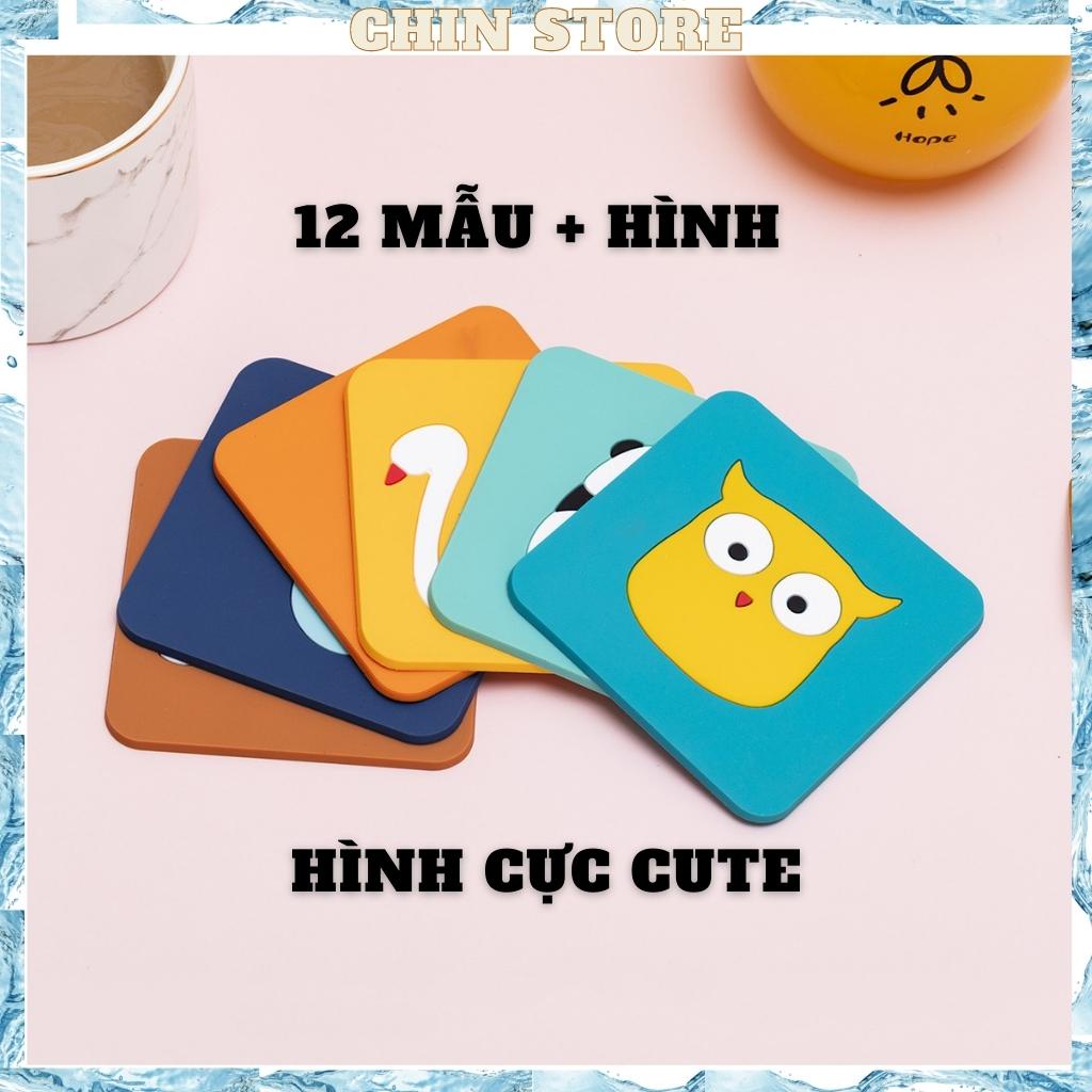 Tấm lót cốc bàn ăn, cốc silicone mềm cách nhiệt hình thú đáng yêu không thấm nước, chống trơn trượt 15cm