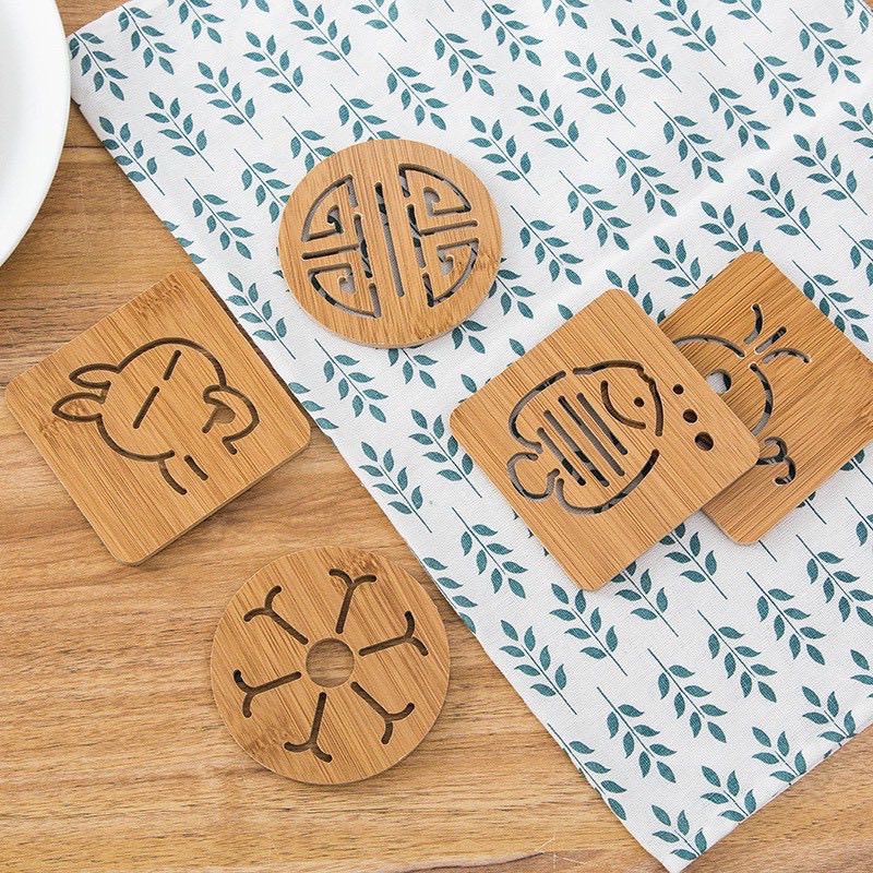 Nhà cửa & Đời sống > Bộ đồ bàn ăn > Khay, tấm lót bàn ăn || Lót cốc gỗ vintage decor lót ly trang trí size 9*9cm (LGM99)Còn hàng
