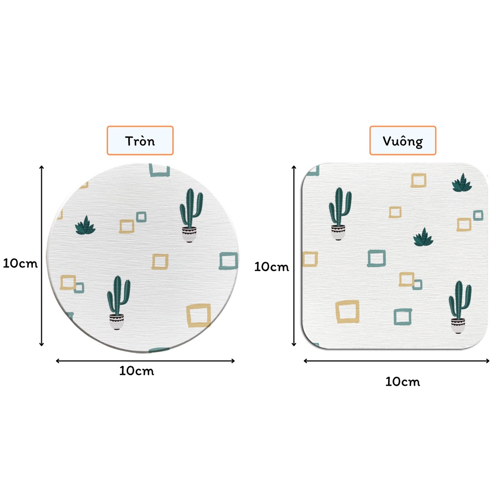 Lót cốc, lót ly thấm nước bằng gốm cao cấp in hình cây xương rồng, dễ dàng vệ sinh chống nấm mốc, nhiều màu lựa chọn