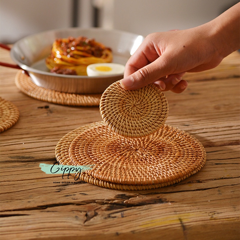 Lót cốc/ly mây tre đan thủ công, lót ấm chè - phụ kiện trang trí bàn ăn - Gippy Decor