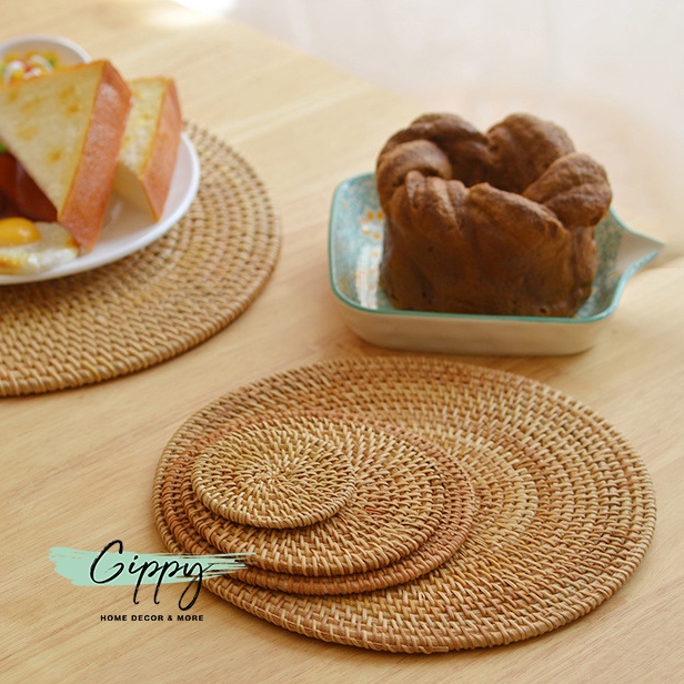 Nhà cửa & Đời sống > Bộ đồ bàn ăn > Khay, tấm lót bàn ăn || Lót cốc/ly mây tre đan thủ công, lót ấm chè - phụ kiện trang trí bàn ăn - Gippy DecorCòn hàng