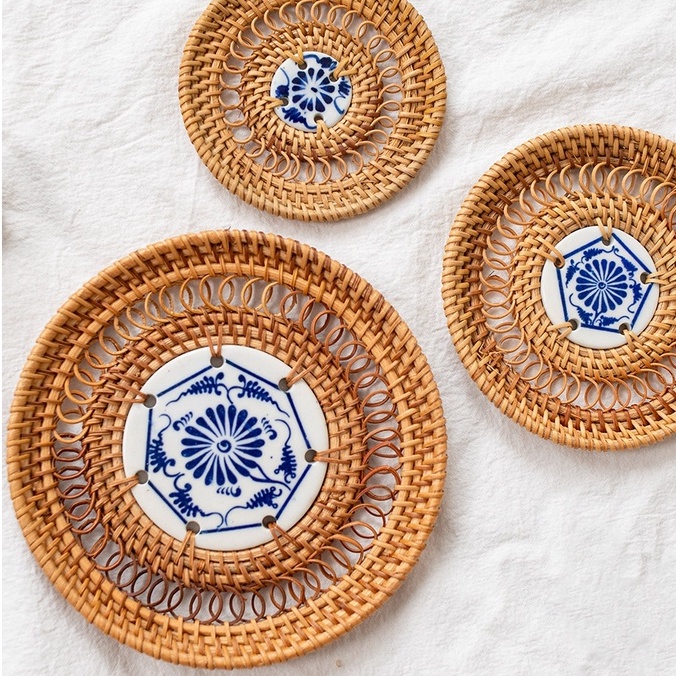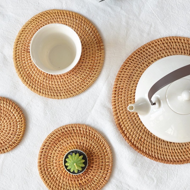 Nhà cửa & Đời sống > Bộ đồ bàn ăn > Khay, tấm lót bàn ăn || Tấm lót cốc mây tre đan BAMBOOO ECO rattan coasters trang trí decor thân thiện môi trườngCòn hàng