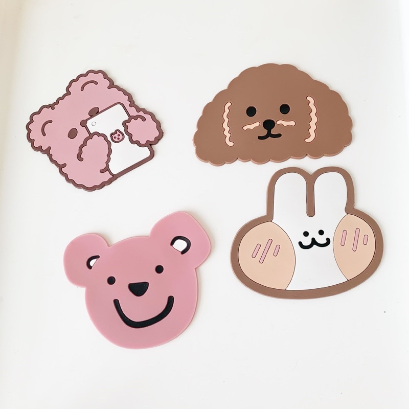 Lót cốc nhựa hình đáng yêu gấu chó thỏ
