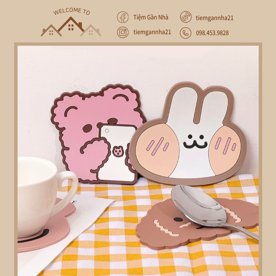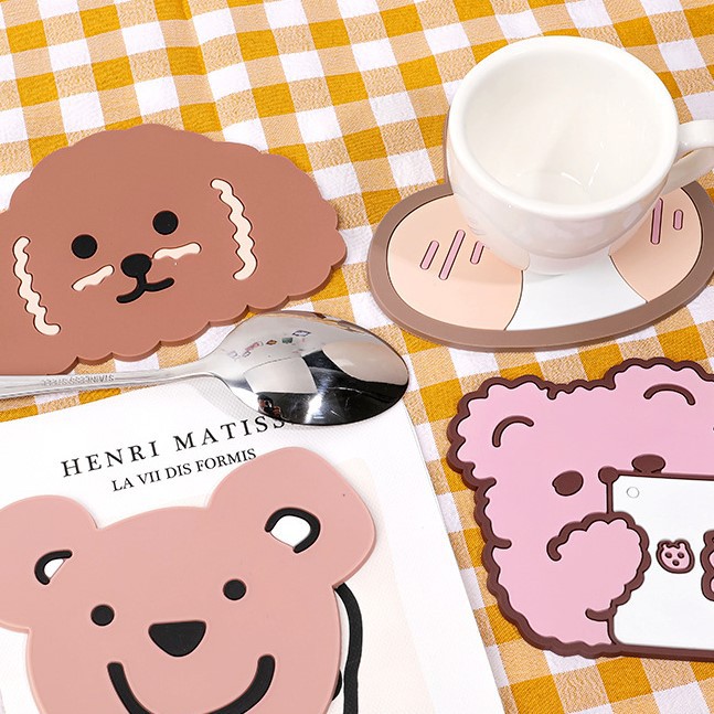 Nhà cửa & Đời sống > Bộ đồ bàn ăn > Khay, tấm lót bàn ăn || Lót cốc silicon cách nhiệt hình cún gấu thỏ dễ thươngCòn hàng