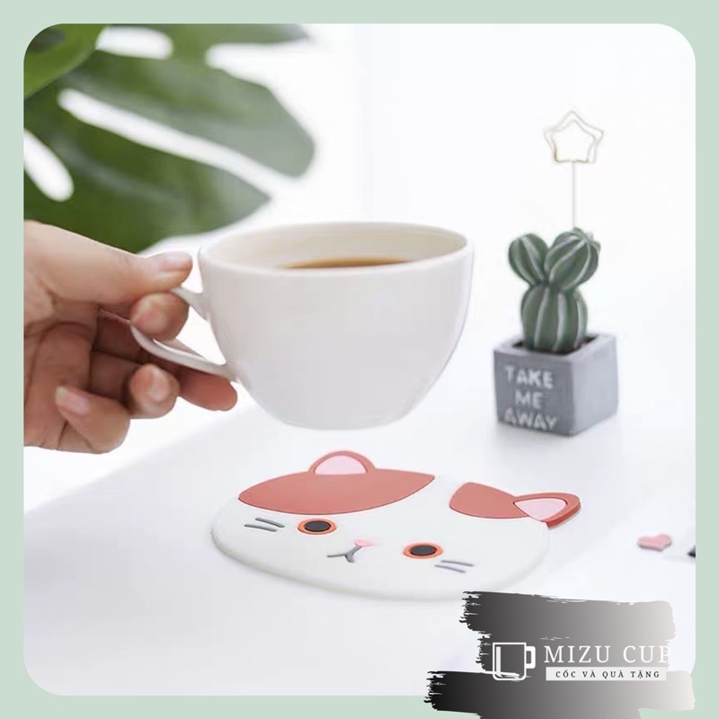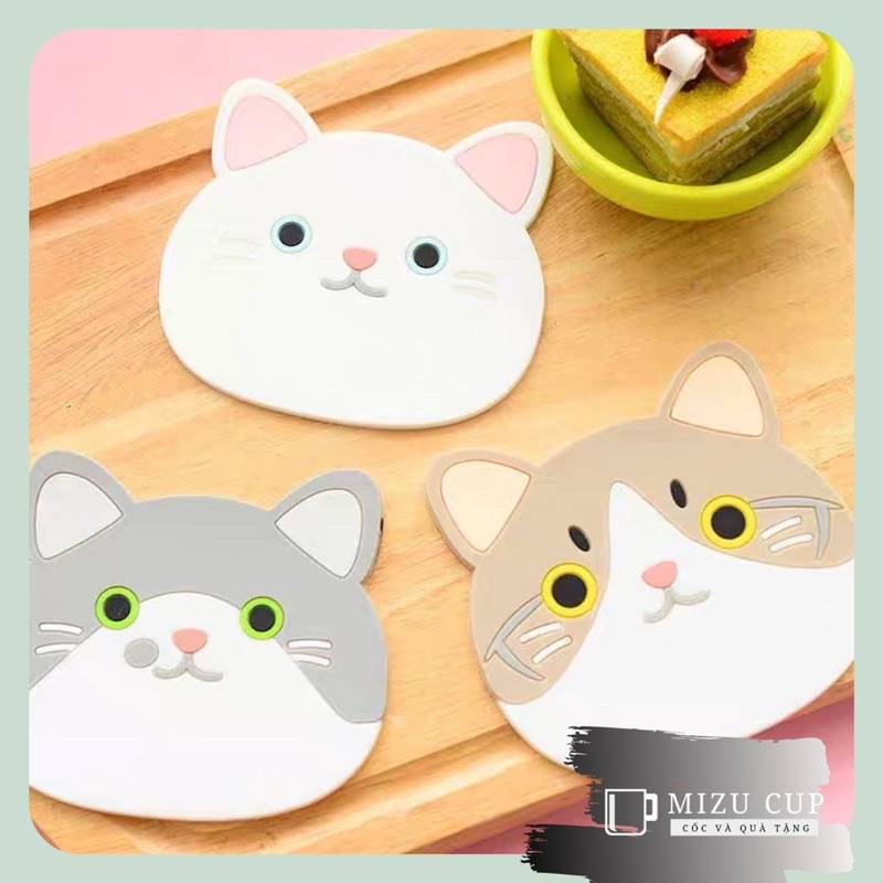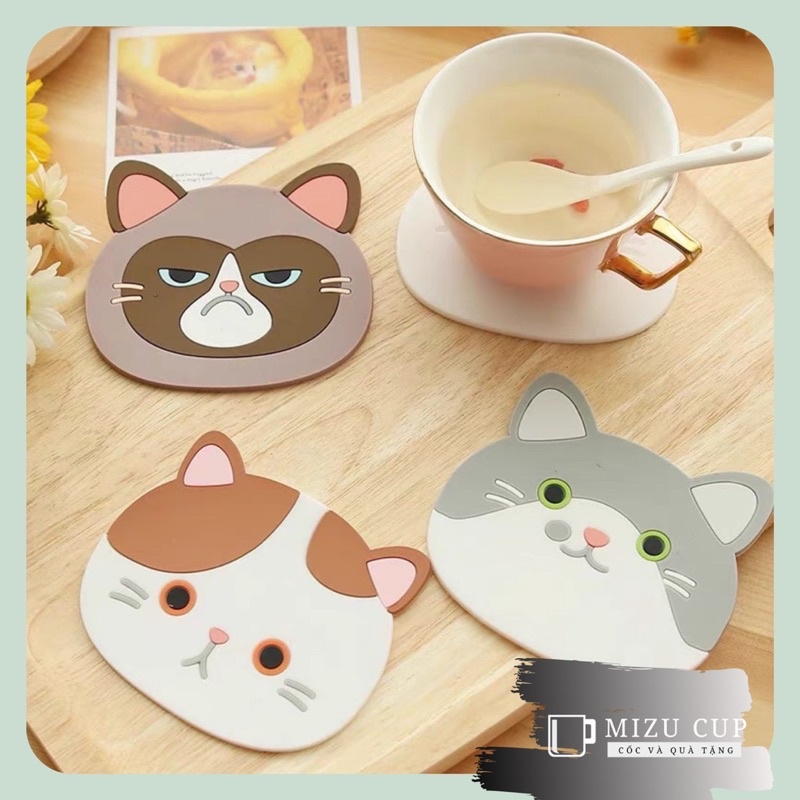 Lót cốc silicon hình mèo biểu cảm dễ thương