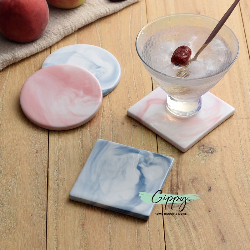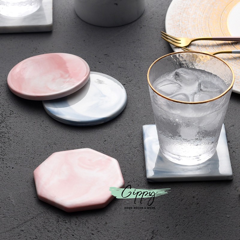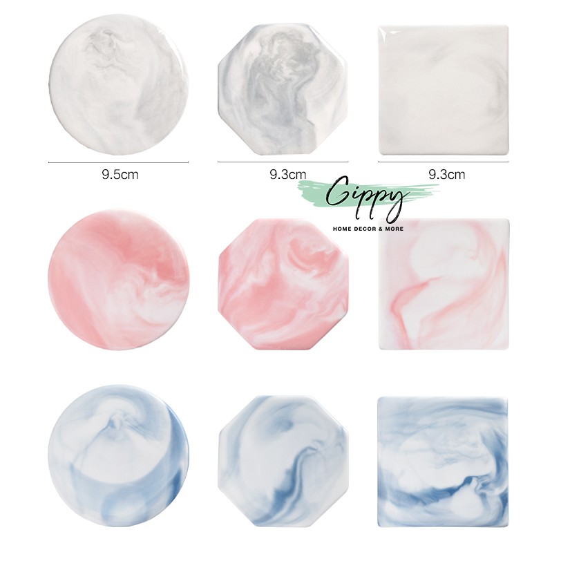 Lót cốc sứ vân đá marble trắng xám/ hồng/ xanh - Phụ kiện trang trí - Gippy Decor