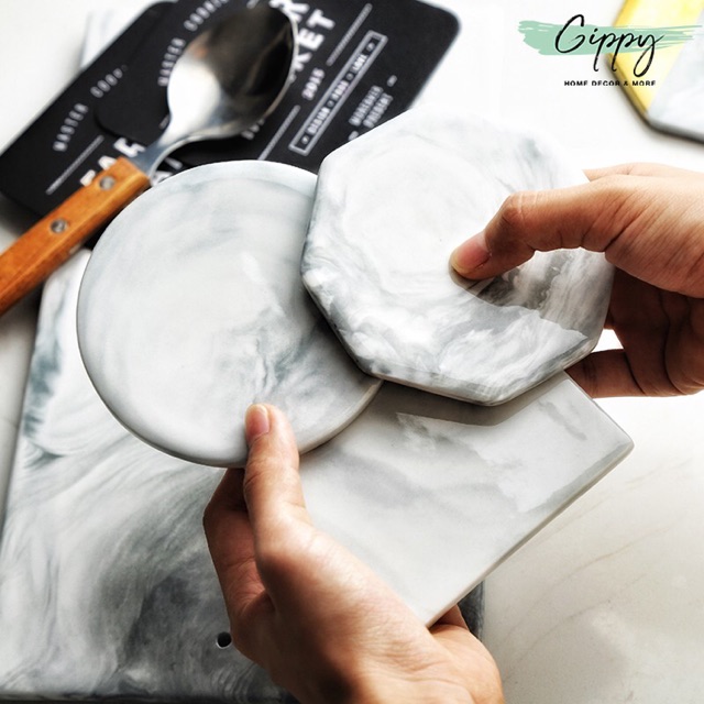 Nhà cửa & Đời sống > Bộ đồ bàn ăn > Khay, tấm lót bàn ăn || Lót cốc sứ vân đá marble trắng xám/ hồng/ xanh - Phụ kiện trang trí - Gippy DecorCòn hàng