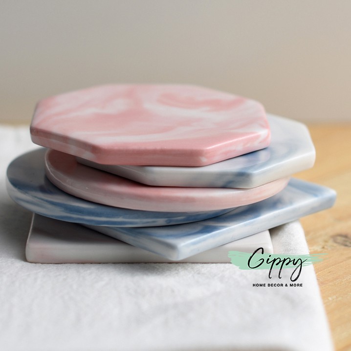 Giới thiệu Lót cốc sứ vân đá marble trắng xám/ hồng/ xanh - Phụ kiện trang trí - Gippy Decor