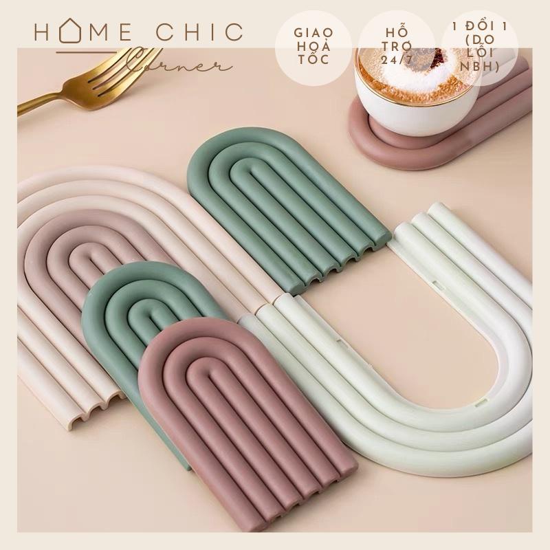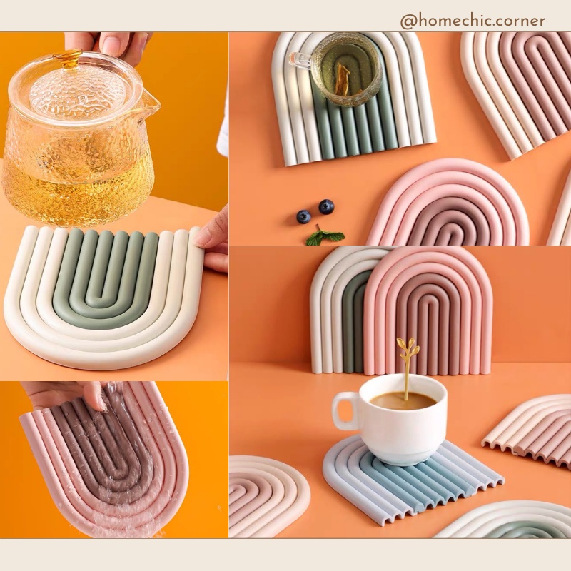 Nhà cửa & Đời sống > Bộ đồ bàn ăn > Khay, tấm lót bàn ăn || Lót cốc tấm lót nồi silicon cách nhiệt chống thấm nước hình cầu vồng | HOME CHIC CORNERCòn hàng