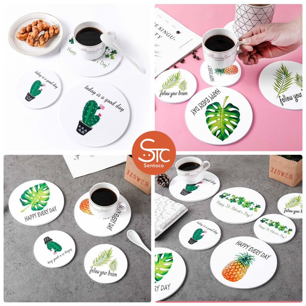 Nhà cửa & Đời sống > Bộ đồ bàn ăn > Khay, tấm lót bàn ăn || Lót cốc tròn ngày dài năng động nhiều họa tiết xinh xắnCòn hàng