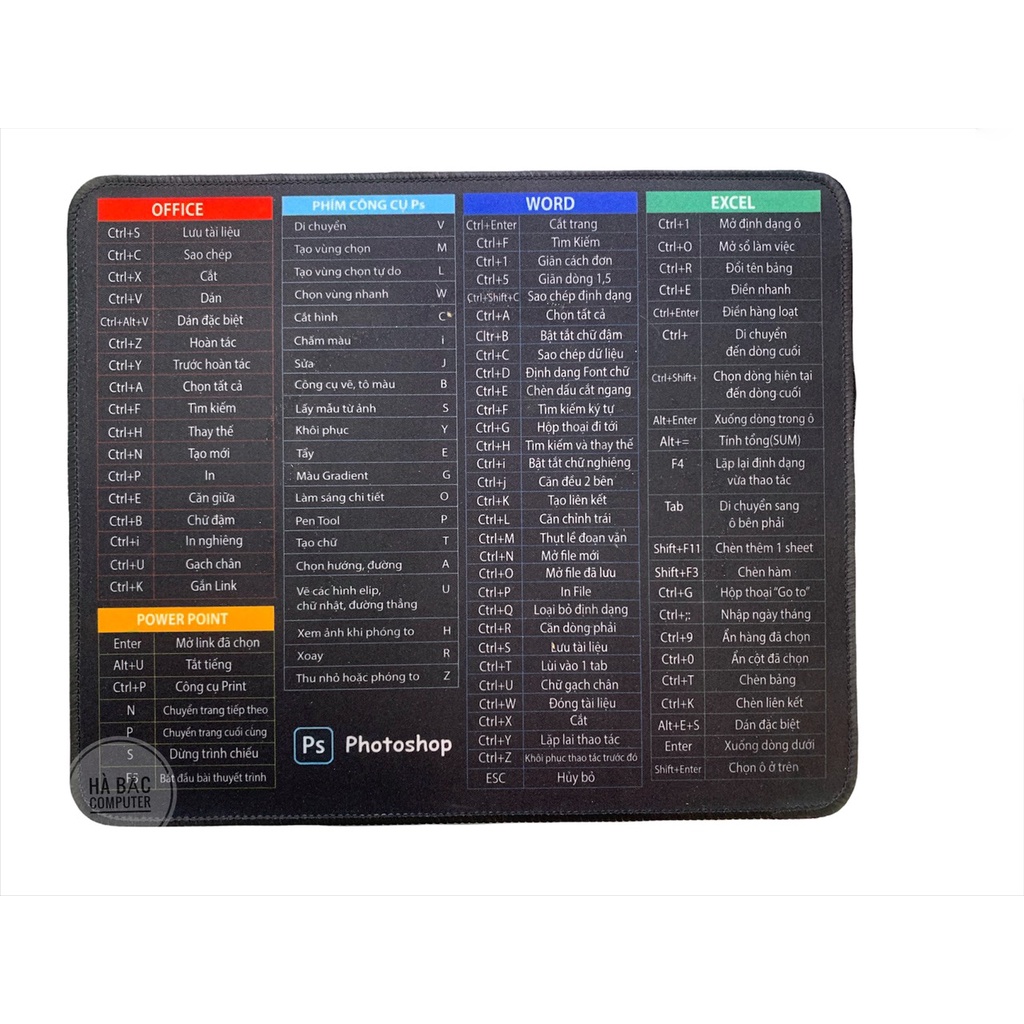 Lớp mặt là vải in chuyển nhiệt các phím tắt cho các ứng dụng 175 Phím Tắt Lệnh Của Office, Powerpoint, Excel, Word, PS, Autocad