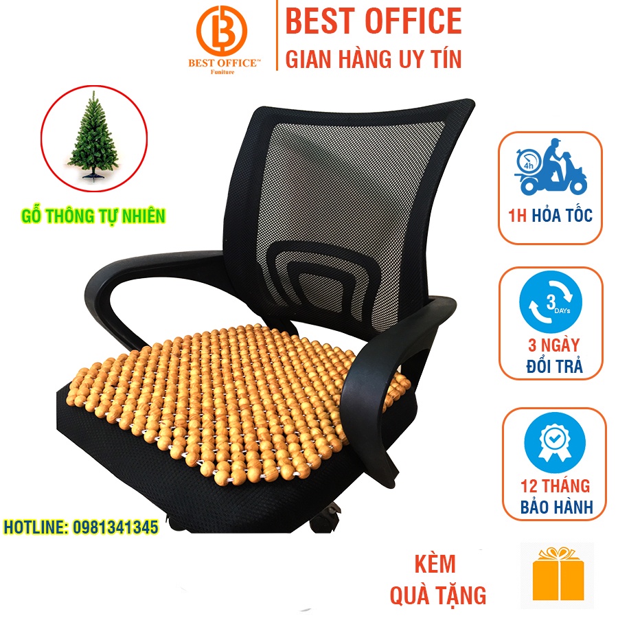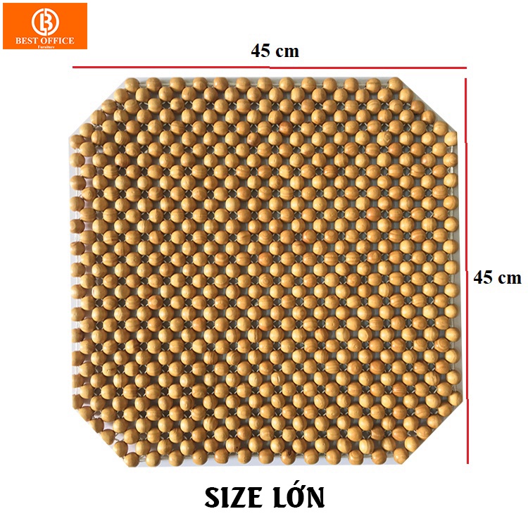 Lót ghế văn phòng - Lót ghế ô tô hạt gỗ thông - Massage thông thoáng KT 45x45 cm hạt 14 li